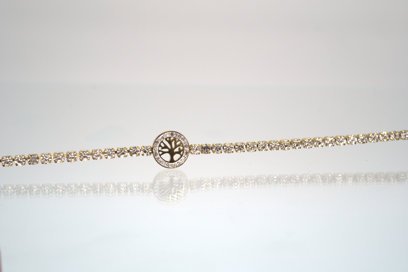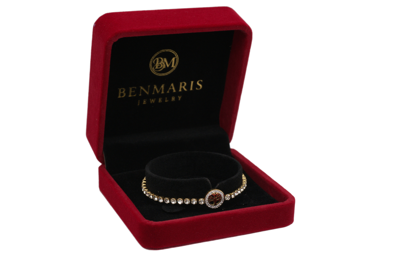 Brățară elegantă din oțel inoxidabil, placată auriu, cu design sofisticat inspirat de Arborele Vieții – simbol al echilibrului și al energiei pozitive. Modelul este accentuat de un șir uniform de cristale strălucitoare, care adaugă un plus de rafinament și luminozitate. Datorită sistemului de prindere reglabil, brățara se adaptează perfect pe încheietură, oferind confort și eleganță în purtare. Realizată din oțel inoxidabil de înaltă calitate, aceasta îmbină durabilitatea cu finețea detaliilor. Produsul este livrat împreună cu cutia originală Benmaris Jewelry, ideală pentru un cadou cu semnificație aparte.