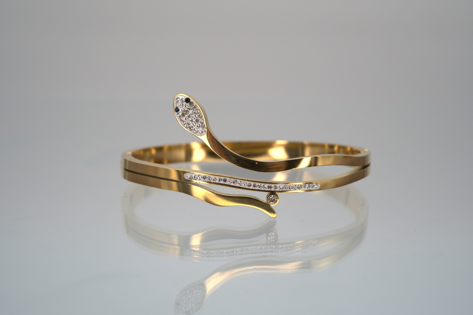 Această brățară elegantă din oțel inoxidabil impresionează prin designul său fluid, inspirat de silueta unei vipere, oferind un efect vizual sofisticat și modern. Linia superioară curbata conferă piesei un aspect unic, iar detaliile atent lucrate sunt completate de cristale fine, aplicate delicat atât pe capul stilizat al brățării, cât și pe segmentul inferior. Realizată din oțel inoxidabil de înaltă calitate, brățara își păstrează strălucirea în timp, fiind rezistentă la uzură și perfectă pentru purtare zilnică sau la ocazii speciale. Produsul vine însoțit de cutia sa premium BENMARIS Jewelry, ideală pentru un cadou rafinat.